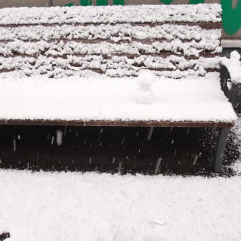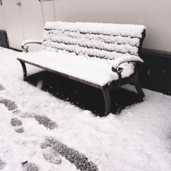 帰りに寄ったショッピングモールのベンチにちっちゃい雪だるまを置いて帰りました。