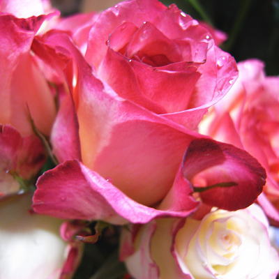 今日はブルーベリーの苗3鉢と珍しい輸入ものの切花のバラを8本とお買い得な切花のバラを10本。