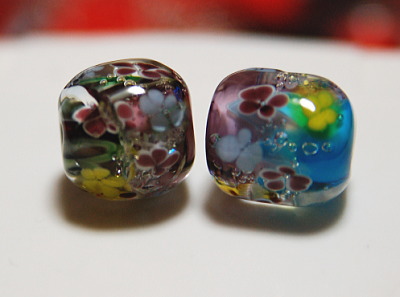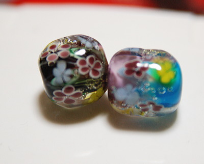 ミルフィオリって不思議、カットしてちょっと埋め込むだけであっという間にトンボ玉らしい玉に!(笑)