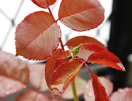 新芽から伸びた葉っぱは赤くて、生き生きしててキレイです。